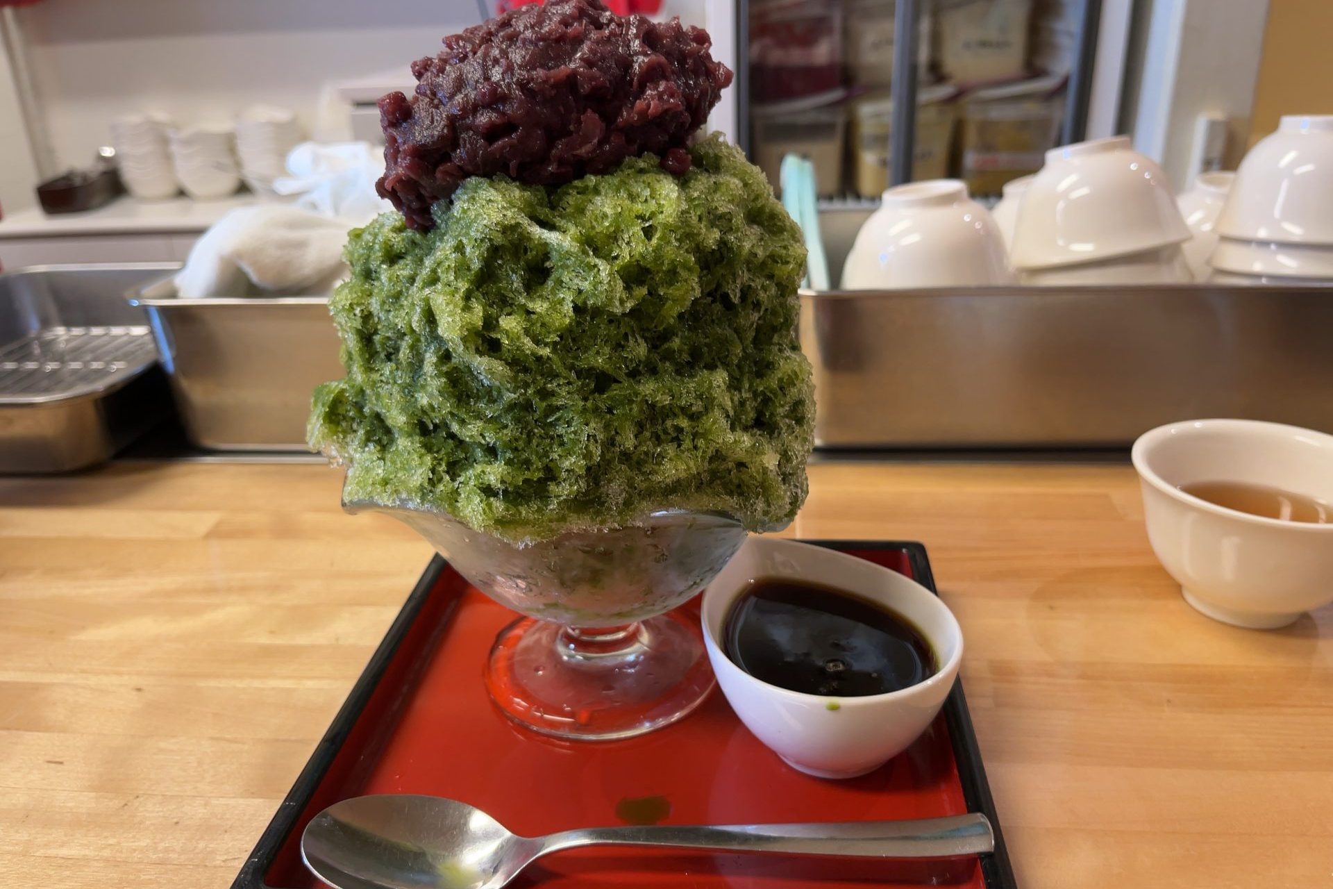 たっぷり盛られた氷に抹茶シロップがたくさんかかってとても美味しかったです☺️🍧