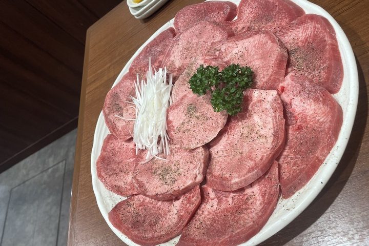 厚切りのタンが有名とのことで早速注文、運ばれてきたのは噂通りの厚切りのタン✨